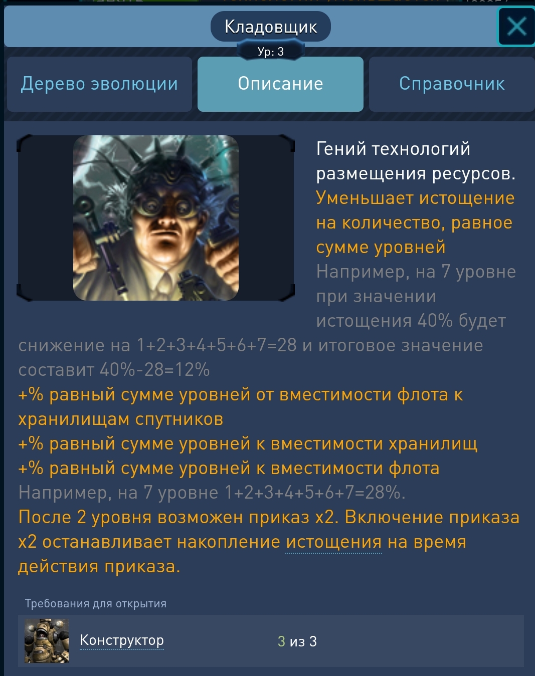 У меня есть Кладовщик 3ур, который уменьшает цифирь истощения на 6 единиц, следовательно, после постройки или апания уровня шахты, в моем случае конкретно, истощение не должно появляться ранее, чем через 9 недель (6-6=0 за 2 месяца). Но оно появляется уже через неделю, если не раньше - просто заметил поздно. И так на всех планках, где я недавно копал шахты.