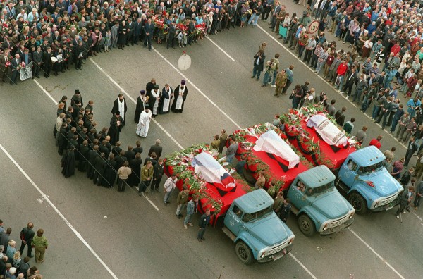 И в Москве инакомыслящие на грузовиках в гробах, а "правильномыслящие" на танках.
