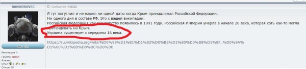 BANDEROVEC, Я все жду года и так далее когда будет ответ. По твоим словам Украина появилась в 16 веке и в составе были все области и крым конечно я жду подтверждения этих слов. Или ты просто не умеешь отвечать за свои же слова. По твоим словам выходит Россия появилась 1991. Так как Россия и Российская Федерация в обще разные страны. Предположим что ты прав чиста предположим. Твои слова смотри на скрине я жду доказательств твоих слов где в составе все области и даже крым