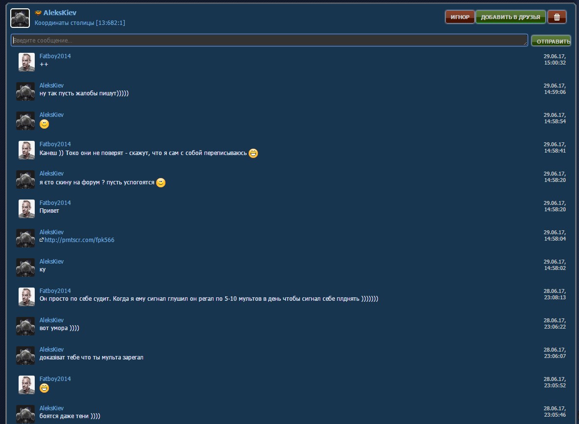 Да не будет он жаловаться. Понимает ведь, что я, в отличие от него не читер и не мультовод. Но на форуме как не побрехать