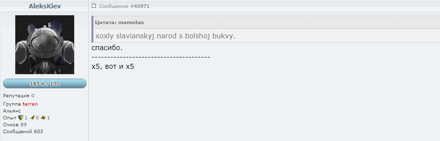 Алекс уже за то что его Хохлом назвали блогодарит, ай да маладца