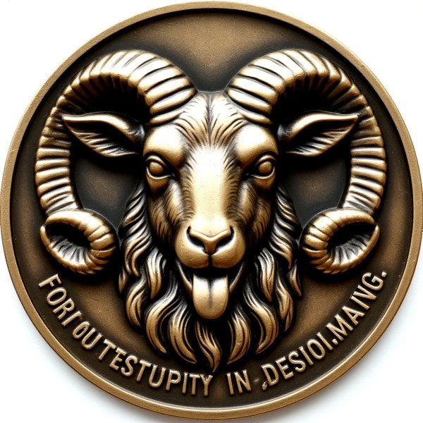 Design: The medal can be made as a funny drawing of a ram with a comical expression on its face. This will add humor to the game and improve the mood of the players.
