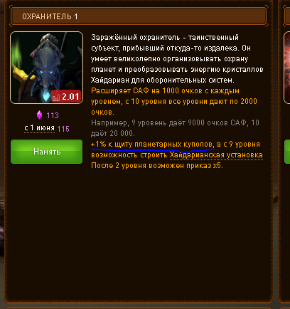 Если игрок получит станцию с куполами (например, через реестр), то Охранитель будет давать им бонус.