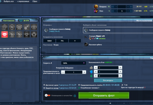 Выбрал 5 лексов с приказом уничтожение и выбрал пустую планету. Урон отображается как нулевой.
