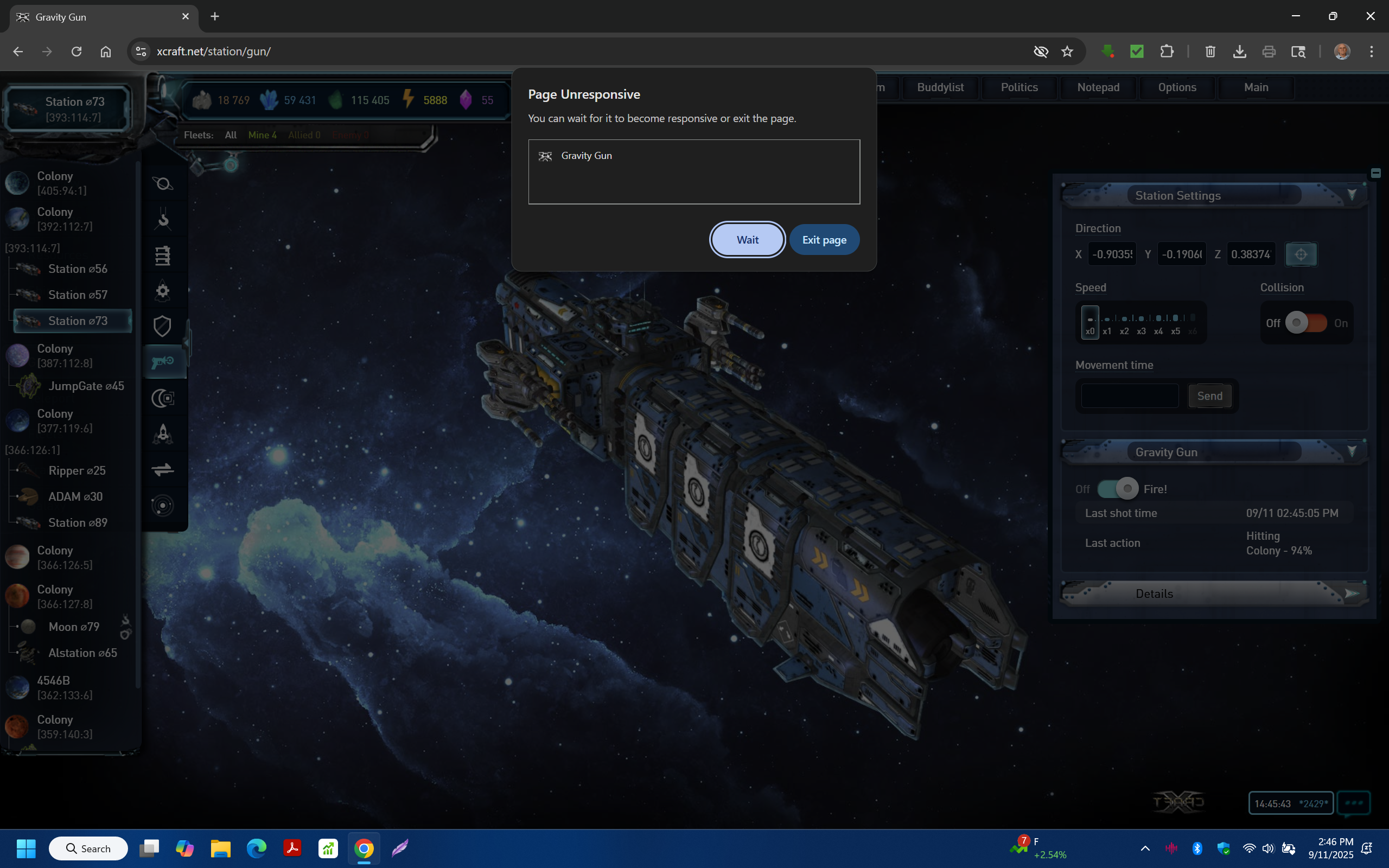 Gravity Gun page does not display properly - I noticed that the picture did not display the target yesterday. Today the page fails to completely load and hangs up. Notice: Planet being fired upon and the firing action doesn't display.