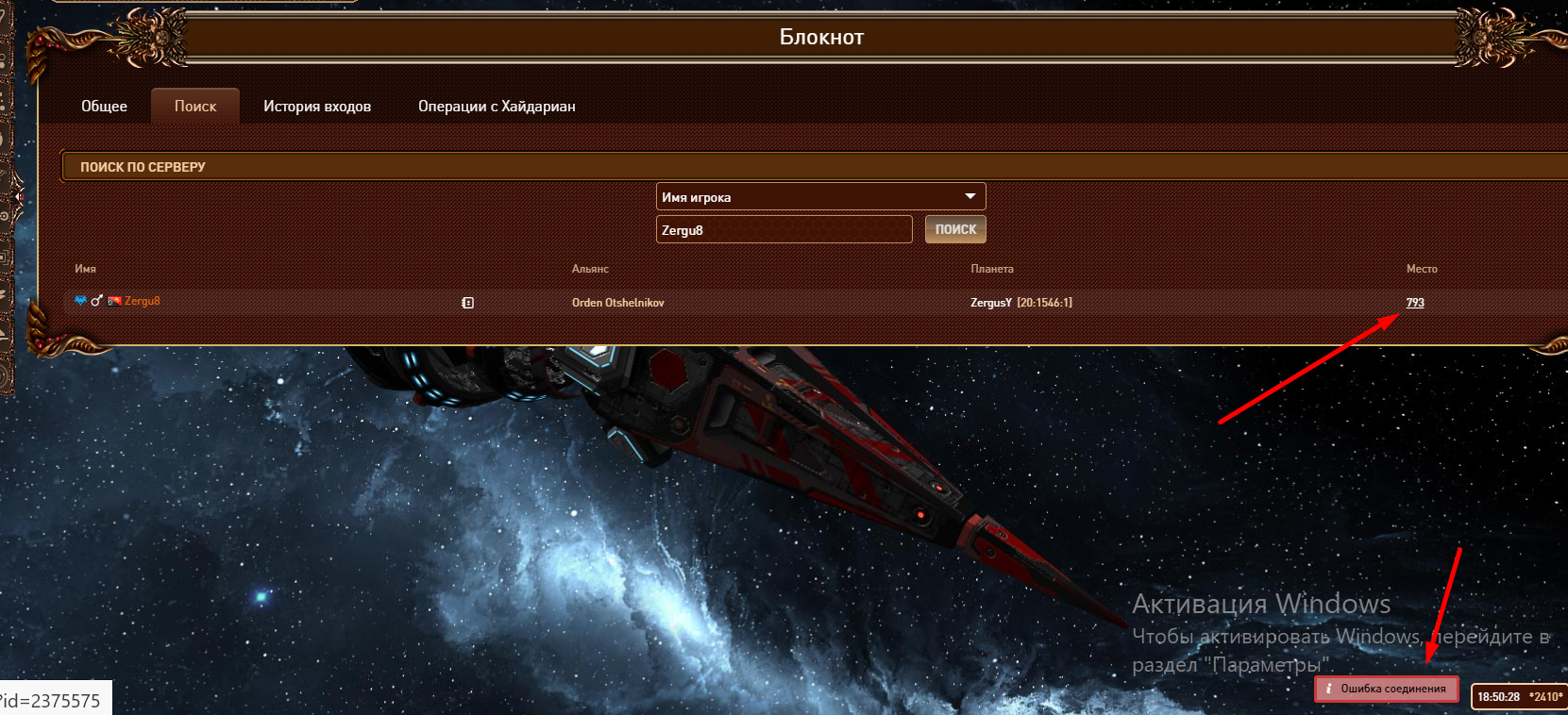 Описание:в блокноте счезла информация по очкам игроков (флот,оборона и т.д.)