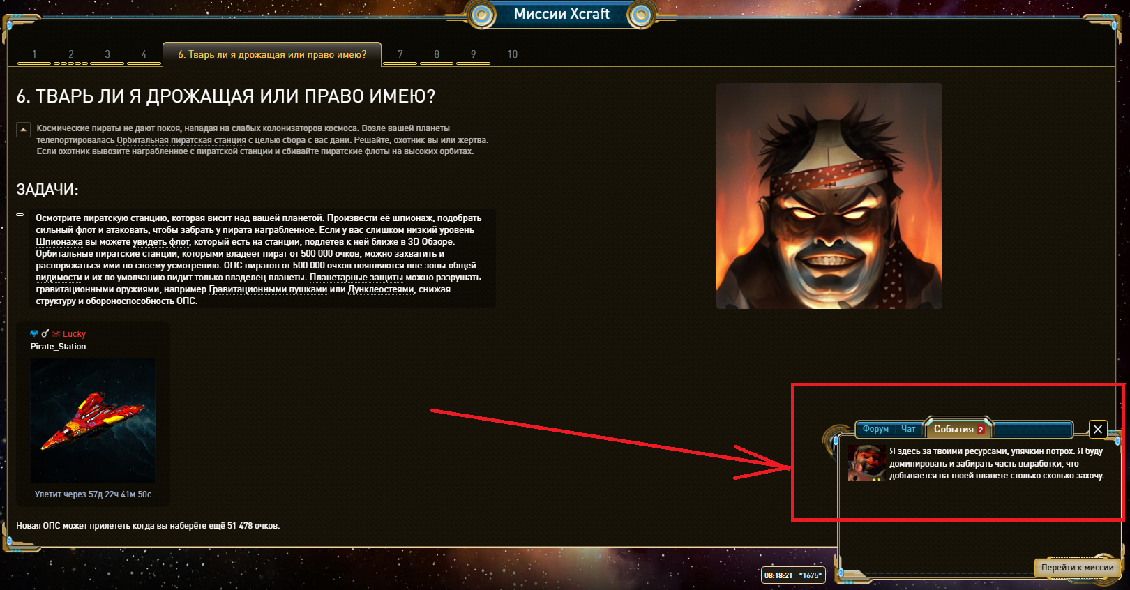 так же и с миссиями. цифра 2. Две миссии к исполнению, кроме ОПС пиратской никаких заданий нет.