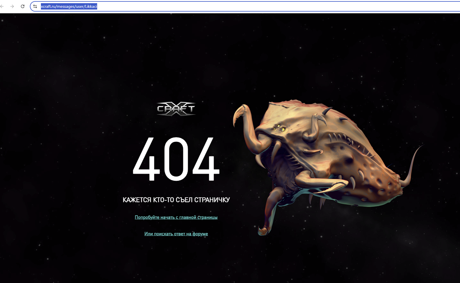 Перенаправляет(404): https://xcraft.ru/messages/user/Likkaci