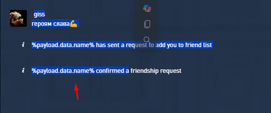 Friend request showing variable name, not the actual string, Friend request is replacing the name with the variable name