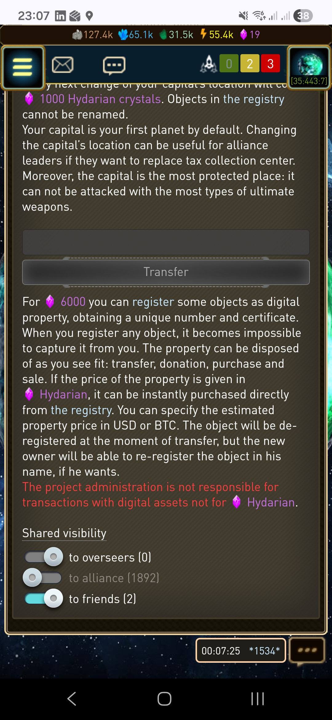 Не открывается вилимость для друзей, А опция для альянса не активна даже