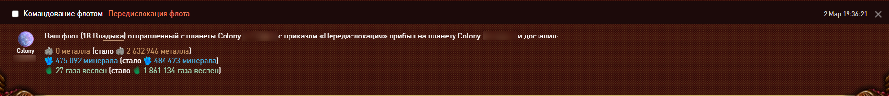 Вообще пропал флот, который был отправлен с ресурсами из обороны планеты на планету: