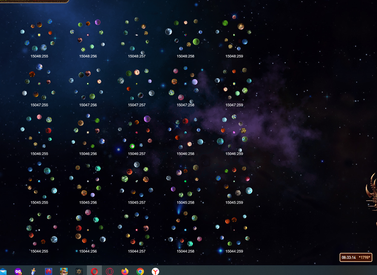 Если подставить значение обзора 17 колоний (2 833 укм) и методом подбора просмотреть симметричную другим четверть систем на корректность отображения, то все цифры сходятся.