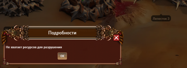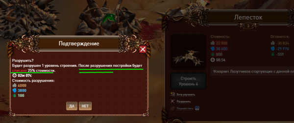 платное разрушение построек, не работает, если не хватает реса