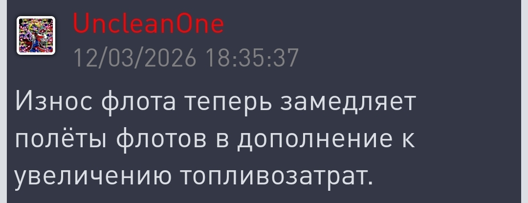 О новость про износ флота прочел только что. 🤣 проверил, не износился, хотя не удивительно, летать то некуда.