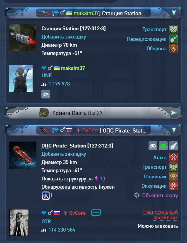 Например наш весьма уважаемый @OvCore (стата 100 лямов) летает по галактике, пилит станции более слабых игроков (+- 1 лям стати).