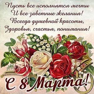 Поздравляю с праздником весны! Желаю исполнения всех желаний и хорошего настроения!)