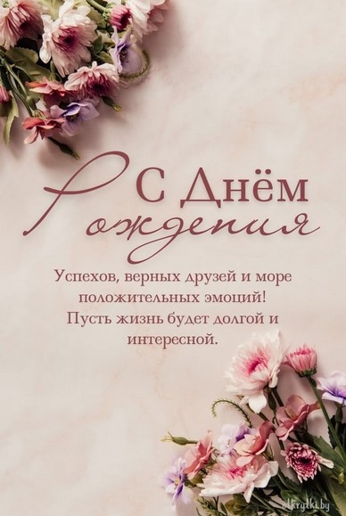 Поздравляю Ирина тебя со столь замечательным днём ,Днём рождения! Желаю того что сама себе пожелаешь ,а также счастья любви ,здоровья ,удачи в делах и начинания и побольше деньжат.Оставайся любимой,красивой и молодой